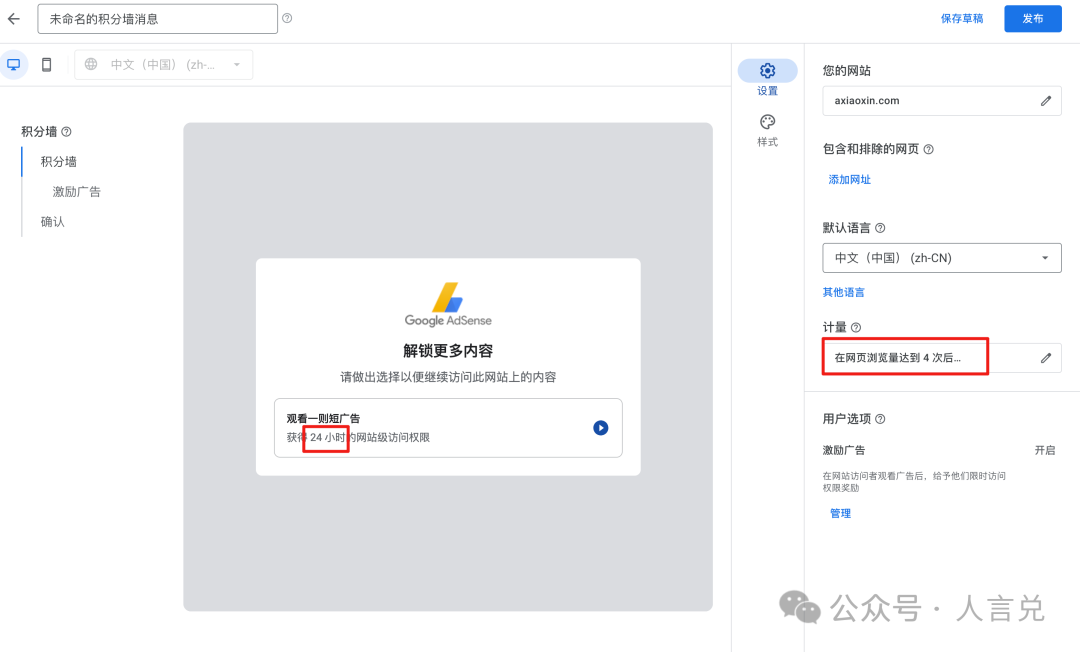 这里不对积分墙的设置做详细说明,我个人测试下来比较影响用户体验,功能比较少,可控制的粒度不够细,可能导致用户流失。但你可以自己测试一下,不同网站不同用户群体效果肯定不一样的不能一概而论,本文只介绍普遍性适用的「广告拦截收入挽回」。