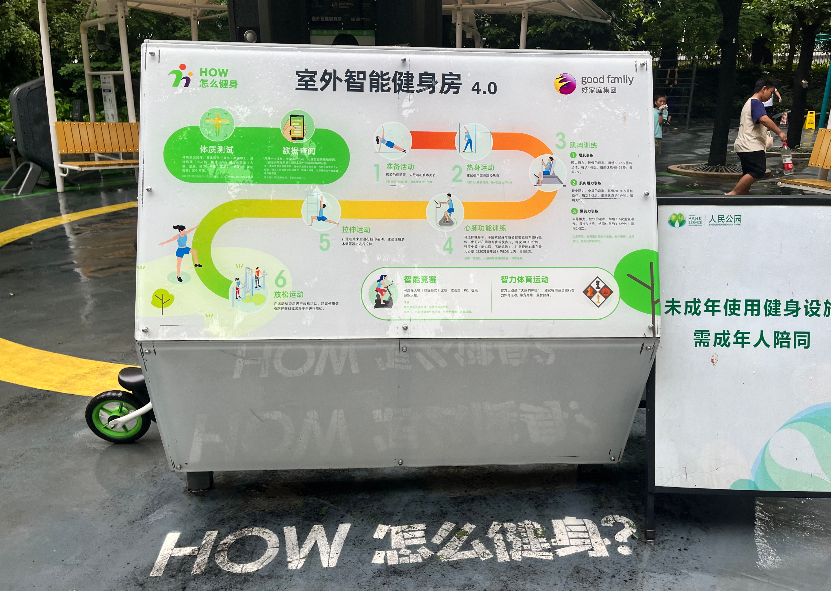 在公园里居然还有室外智能健身房,还是第一次见到。