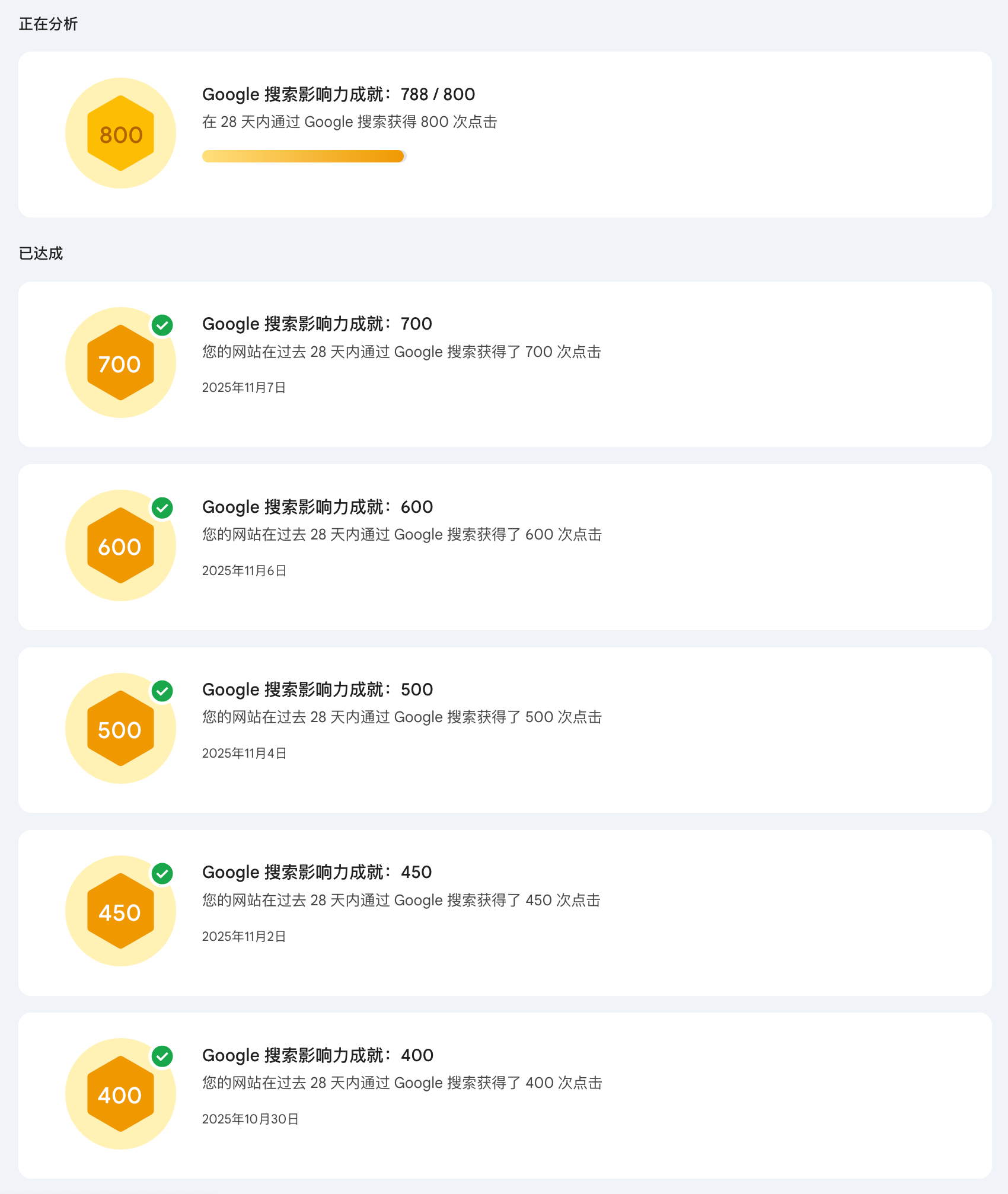 cc1 28 天 679 次点击:cc1 28 天内通过 Google 搜索获得了 679 次点击(阶段性目标为 700 次点击)。从 450 到 679,离 700 只差一步。SEO 的复利效应开始显现,开心!