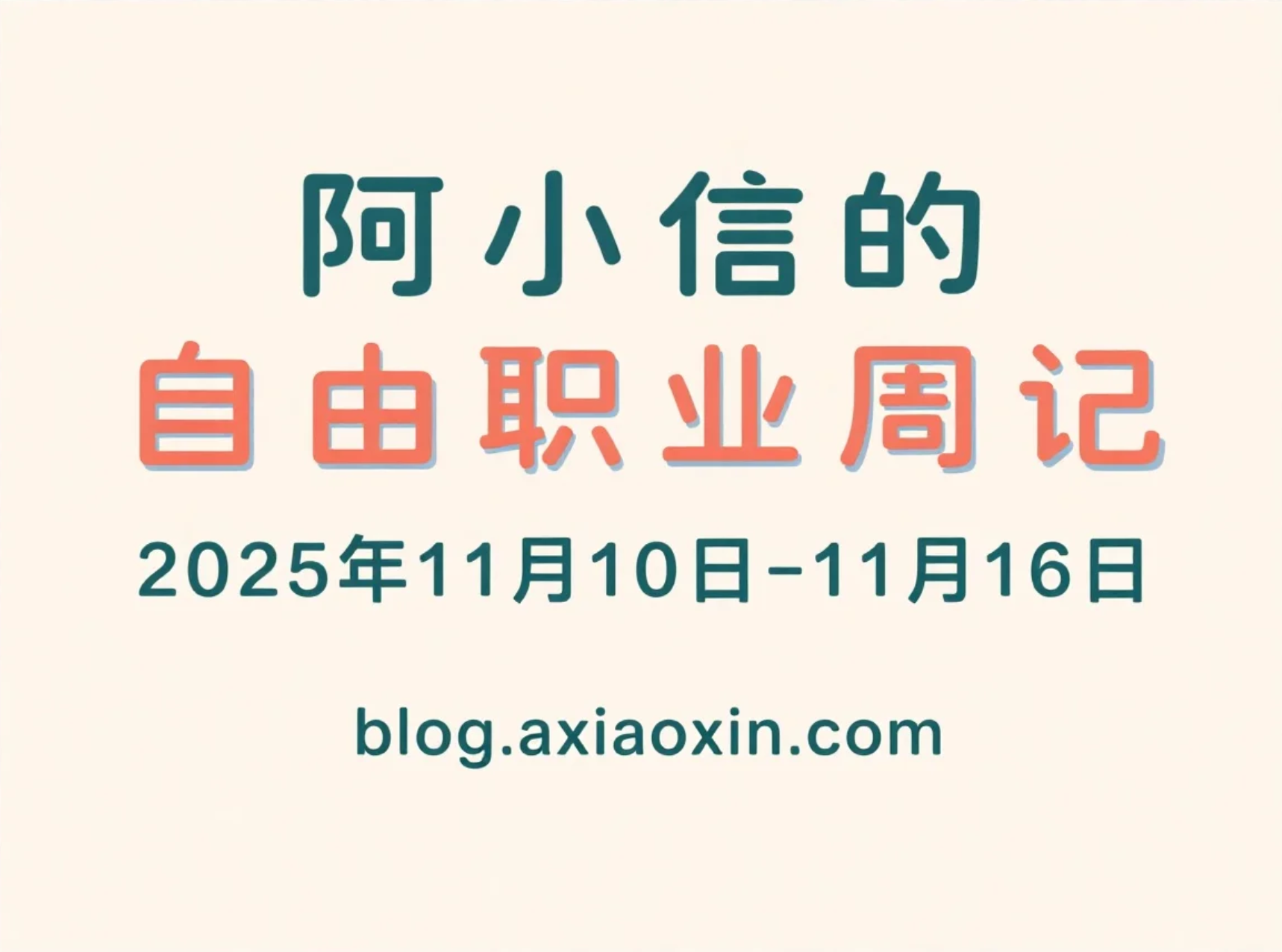 黑喽,我是阿小信,一个两年经验的自由职业者/独立开发者,关于我是如何走上这条不上班自然醒的不归之路,可以阅读 这篇文章 。这是我的本周周记,原本是“周报”,但我觉得班味太浓,而且现在我的重心在偏向锻炼身体,比较平淡,并非每一天都有什么值得记录,所以我觉得还是叫做“周记”好一些。